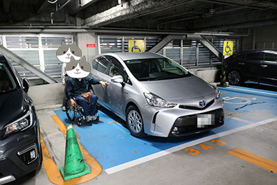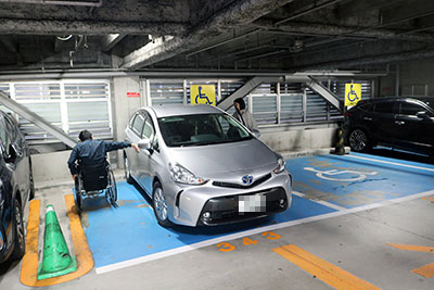 済生館の立体駐車場の障がい者用駐車場に車を停めました。