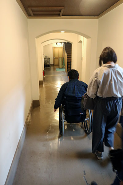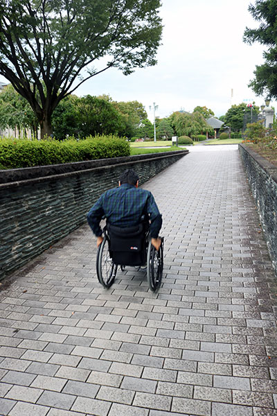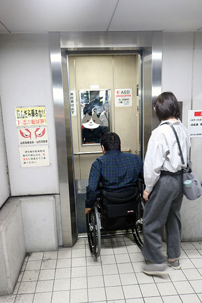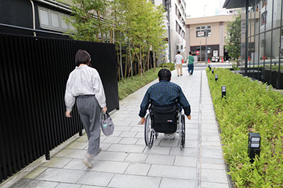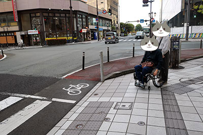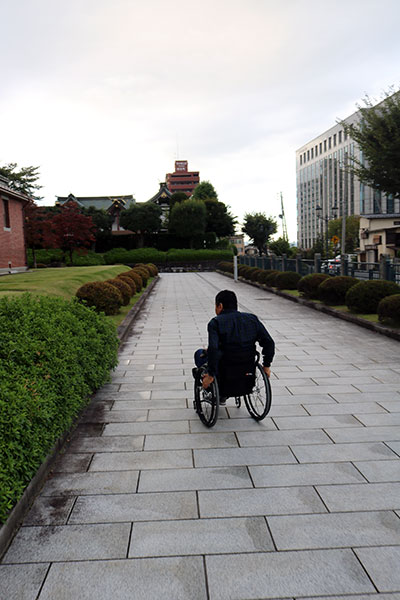 車いすで巡る山形市七日町