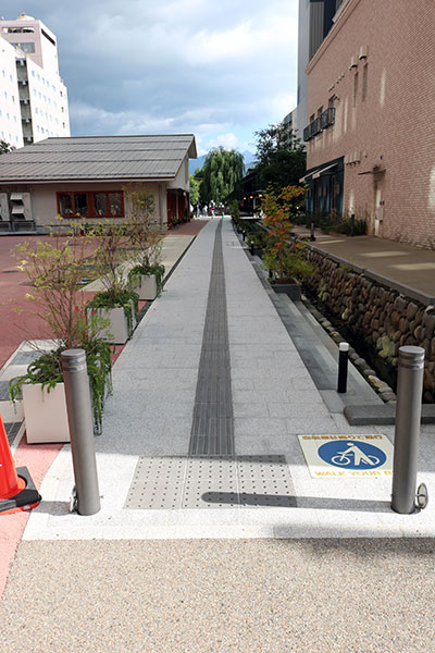 七日町の横断歩道は段差がなくスムーズに移動できます。