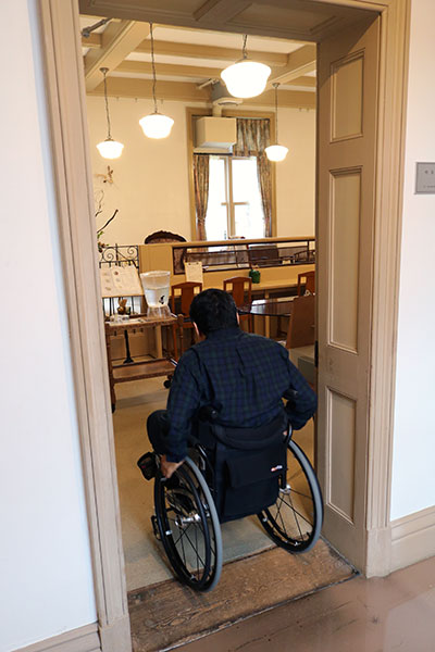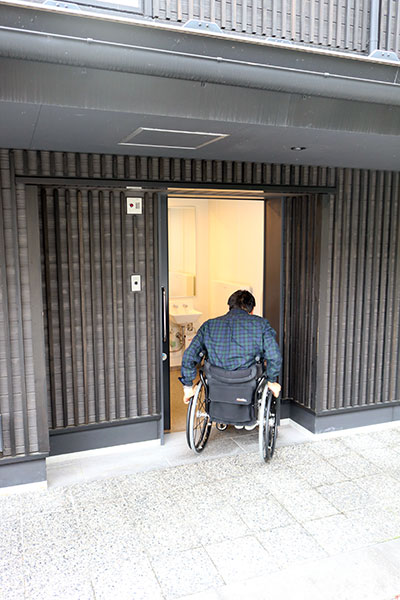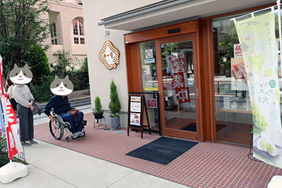 裏の入り口です。スロープが付いていて、車いすでも入れます。