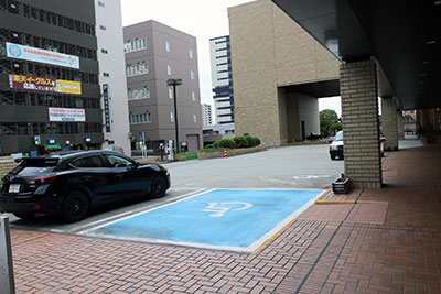 ほっとなる広場から文翔館に向かう途中に山形市役所があります。障がい者用駐車場は1階入り口目の前にあります。