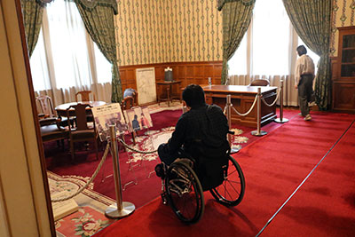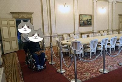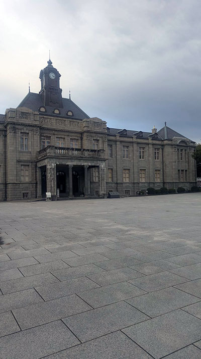 文翔館の入り口の昇降機が利用できなかったため、裏の入り口に移動中です。