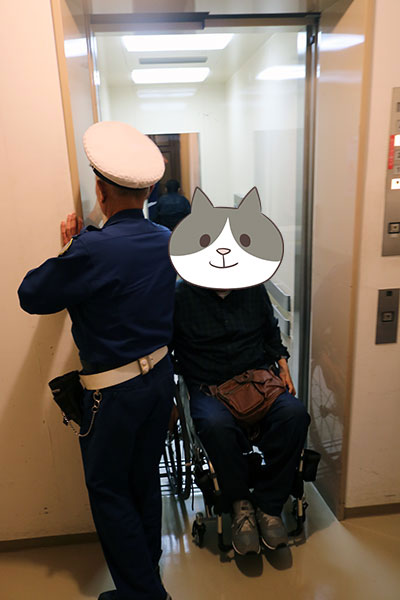 障がい者用駐車場の近くにエレベーターがあります。